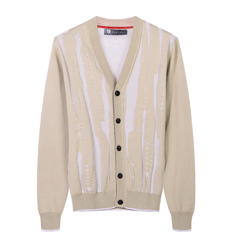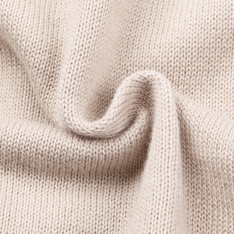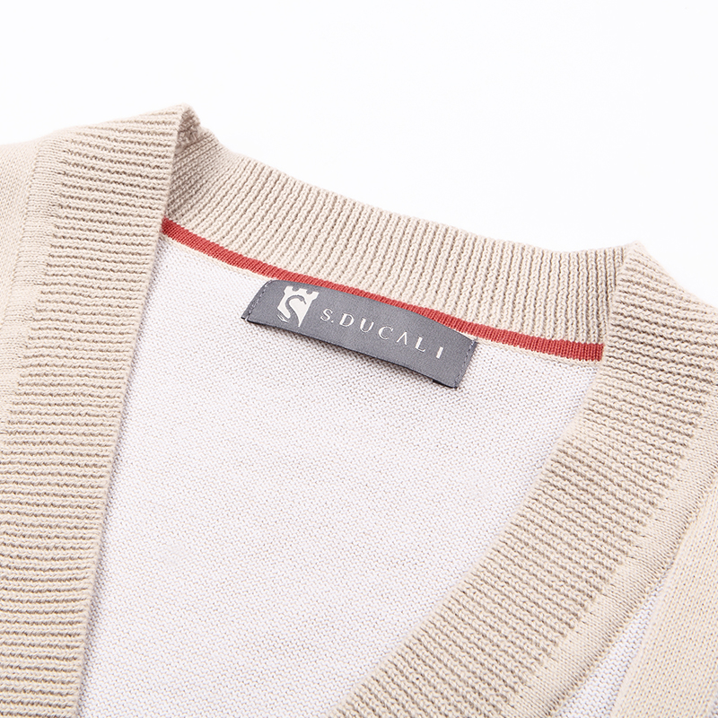 12针,细纱薄款毛衫,舒适透气;V领开襟搭配前片创意单边冚花型设计时尚个性;领口、袖口、下摆卷边,更显精致。